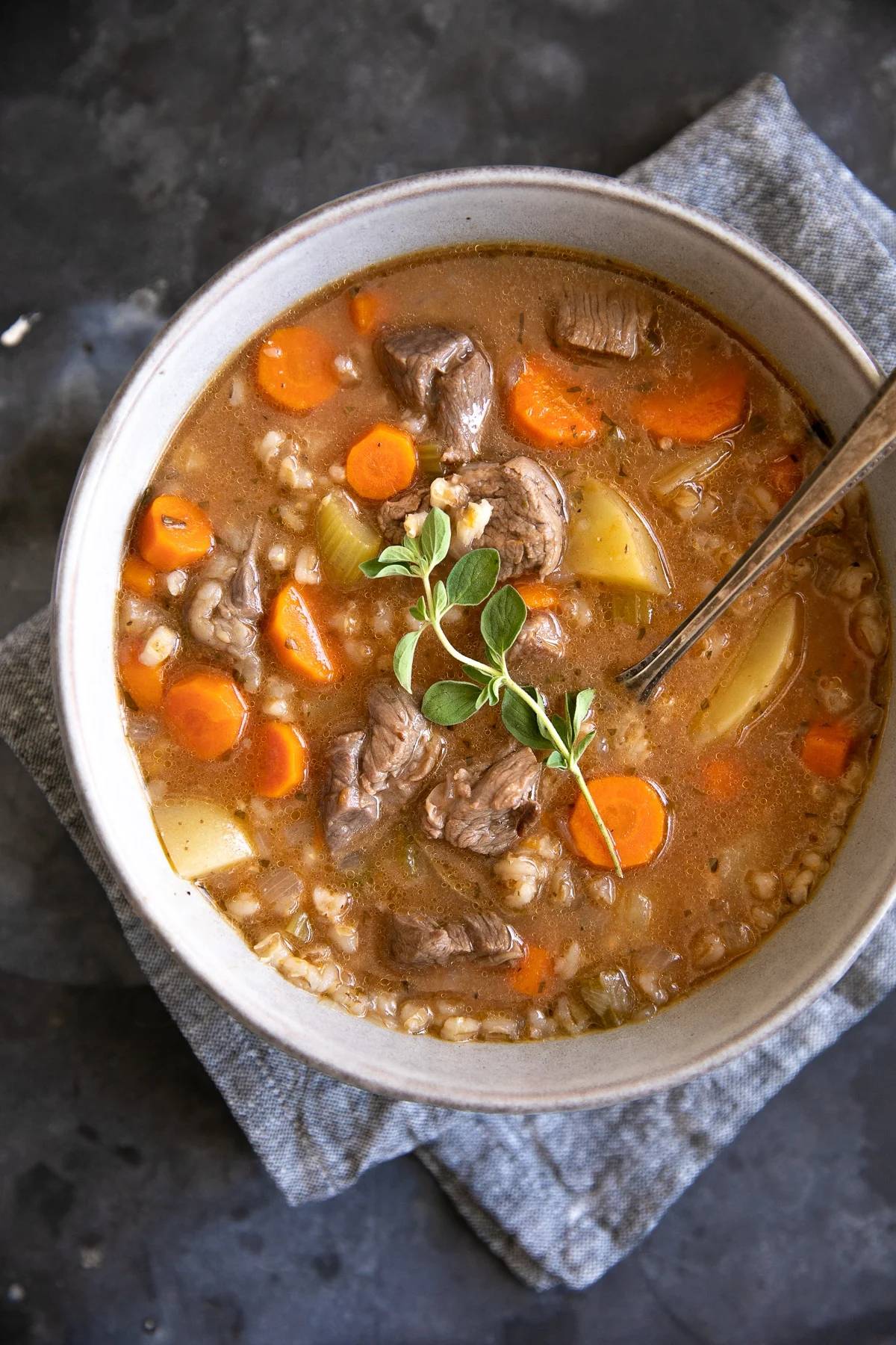 Filled with fall-apart chunks of beef, nutritious veggies, and chewy barley in a savory, rich, and beefy tomato-based broth, this Beef Barley Soup is the best, hands down. It’s easy to make and the perfect hearty, feel-good, wintertime soup.